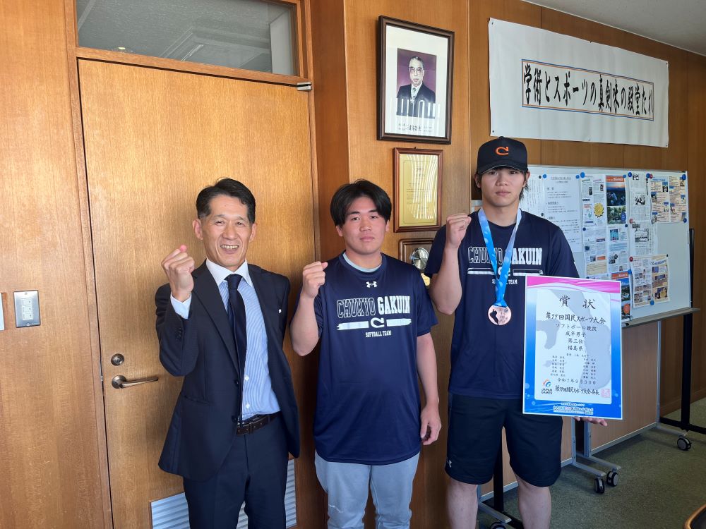 秋の夜長、虫の音が心地よく響く季節となりました。皆さんいかがお過ごしでしょうか。さて今回のお客様は、滋賀県で開催された「わたSHIGA輝く国スポ・障スポ2025」のソフトボール成年男子の部(各地区予選を勝ち抜いた13チーム参加)に郷土代表として参加した安部竜空さん(経営4)と田上渉塁さん(経営1)です。安部さんは投手として全試合で登板し、福島県史上初の第3位に大きく貢献、田上さんは内野手として岩手県の第5位入賞に貢献しました。この大会を通じて感じたことや試合の様子など伺いました。