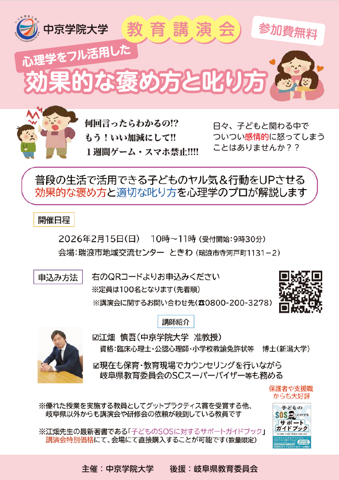 教育講演会「心理学をフル活用した効果的な褒め方と叱り方」