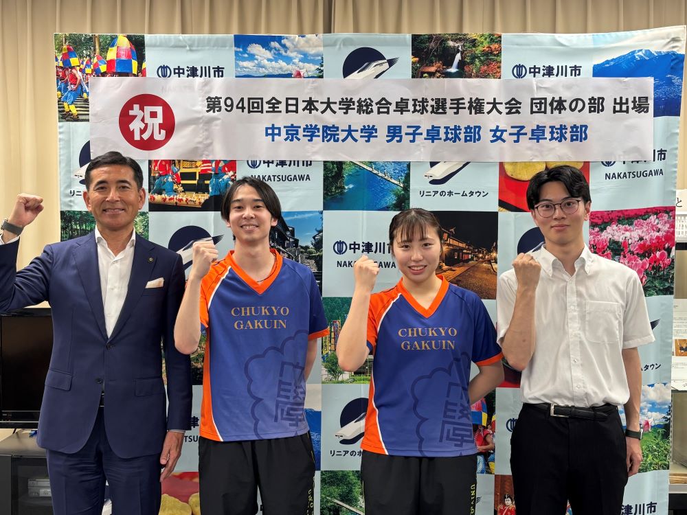 6月24日(火)中津川市役所において、「第94回全日本大学総合卓球選手権大会」出場の激励会を実施していただきました。