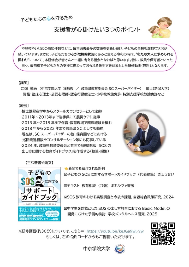 岐阜県教育委員会でも紹介:子どものSOS研修動画「支援者が心掛けたい3つのポイント」