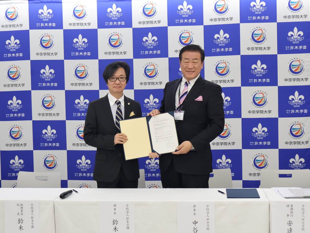 中京学院大学は1月26日、学校法人鈴木学園と教育連携協定を締結しました。調理・製菓分野で専門技能を育成する鈴木学園と、実践的なマネジメント力を育む本学が連携することで、学生に多様で質の高い学びの機会を提供し、食産業の未来を担う高度人材の育成をめざします。