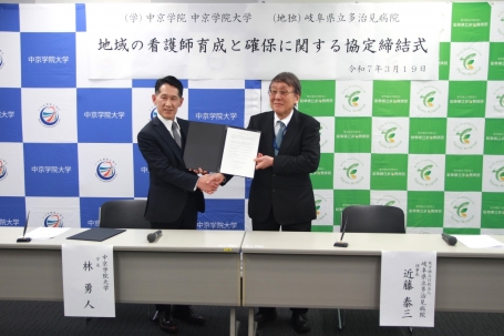 中京学院大学と岐阜県立多治見病院との間で、2025年3月19日(水) 「地域の看護師育成と確保に関する協定」を締結しました。