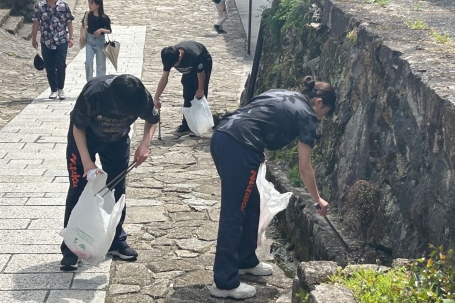 男女卓球部が5月18日(土)に、岐阜県中津川市にある馬籠宿のごみ拾いを行いました。