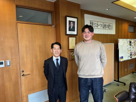 赤塚選手の活躍は、本学にとって大きな励みとなっています。学長も「これからも目標に向かって邁進し、さらなる飛躍を期待しています。」とエールを送りました。