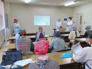 去る12月14日(土)に本学、健康栄養学科主催でこれまで年4回(四季ごとに)実施してきた「Let’s食王」の最後のイベントを行いました。場所は今まで通り、瑞浪市稲津町にあります「稲津町コミュニティーセンター」にて実施し、11名の成人の方が参加して下さいました。今回のテーマは12月の実施ということもあり「世界のクリスマスに願いを込めて~ありがとう!Let‘s食王!」というテーマで行いました。